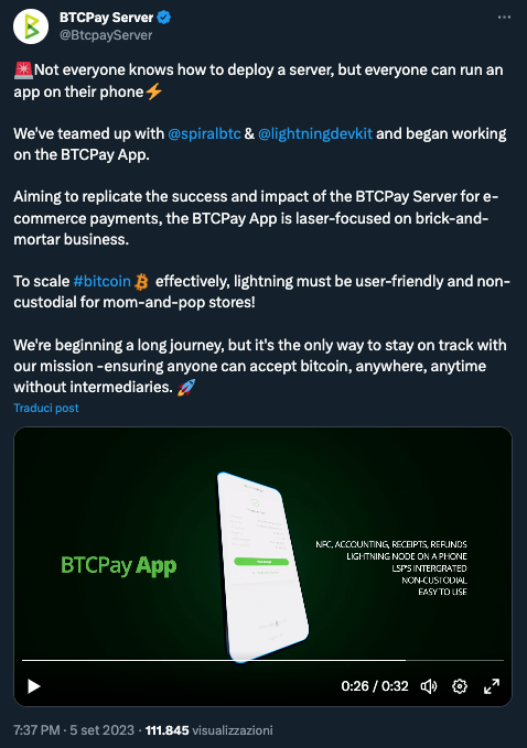 Ma ciò che ha più entusiasmato è l’annuncio dell’app. Il team ha fatto sapere di stare lavorando su un’applicazione che avrà tutte le caratteristiche di BTCPay, ma non richiederà la capacità di configurare un server.