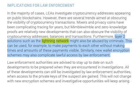 Anche le soluzioni di Layer-2, come il Lightning Network, potrebbero essere sfruttate dai criminali. Ad esempio, possono essere utilizzate per effettuare pagamenti reciproci senza rendere visibili l'ora e l'importo di tali pagamenti.