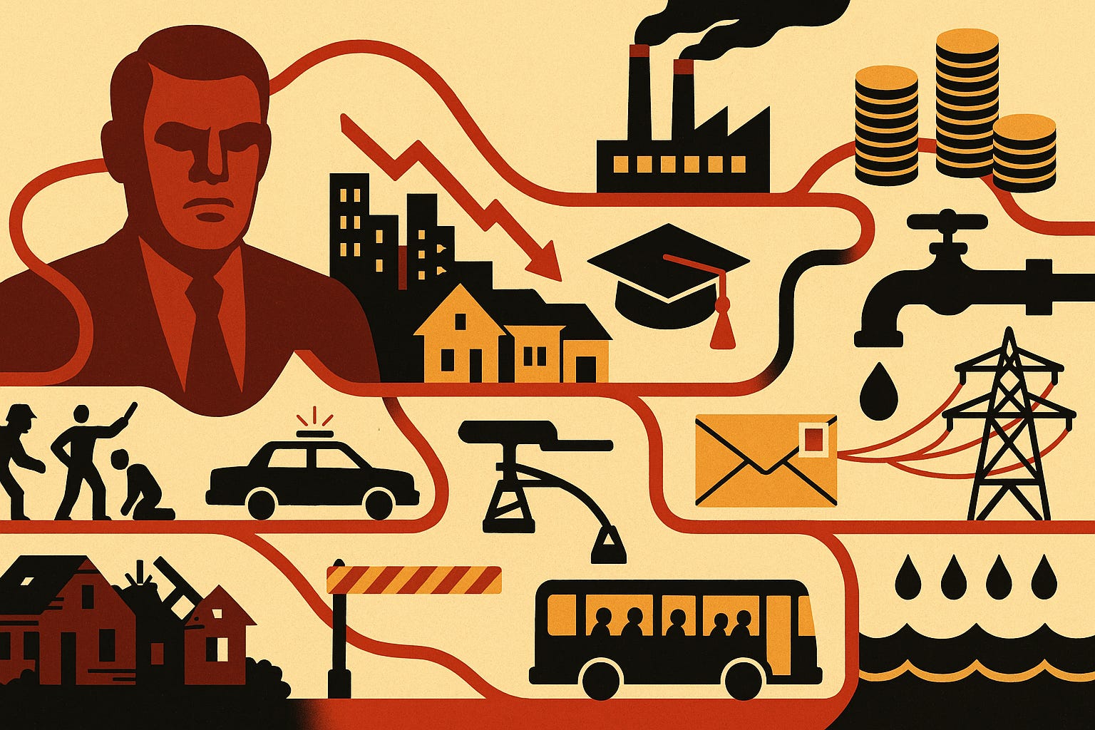 Nel suo Manifesto Libertario, Murray Rothbard identifica il filo rosso che unisce la fornitura di servizi scadenti nella società contemporanea: la proprietà statale.
