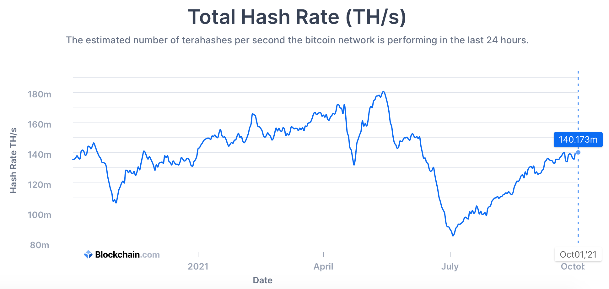 Dal grafico si nota in modo evidente che da quando il mining ban è diventato effettivo, l’Hash Rate globale ha subito un fortissimo calo. A luglio, quando i miner cinesi hanno iniziato a dislocare la loro attività in altri paesi, la curva ha ripreso a salire.