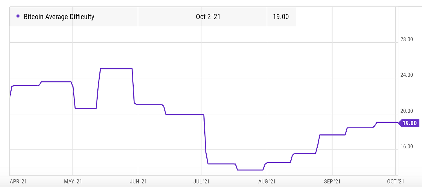 Così, quando la Cina ordina lo spegnimento del 50% dell’Hash Rate globale, ecco che la difficulty crolla, per poi ricominciare a salire gradualmente man mano che la potenza di calcolo viene riattivata.