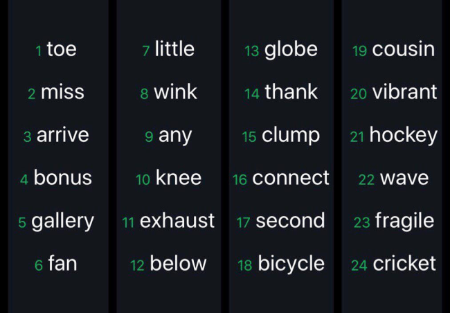 Di cosa si tratta all’atto pratico? La chiave privata è una lunga stringa alfanumerica molto complessa da memorizzare per l’essere umano ma fortunatamente lo sviluppo di Bitcoin ci ha portato BIP-39, ovvero la codificazione delle chiavi private e il backup dei wallet nella mnemonic seed phrase: un elenco ordinato di 12 o 24 parole in lingua inglese è tutto ciò che serve per avere il controllo dei nostri satoshi.