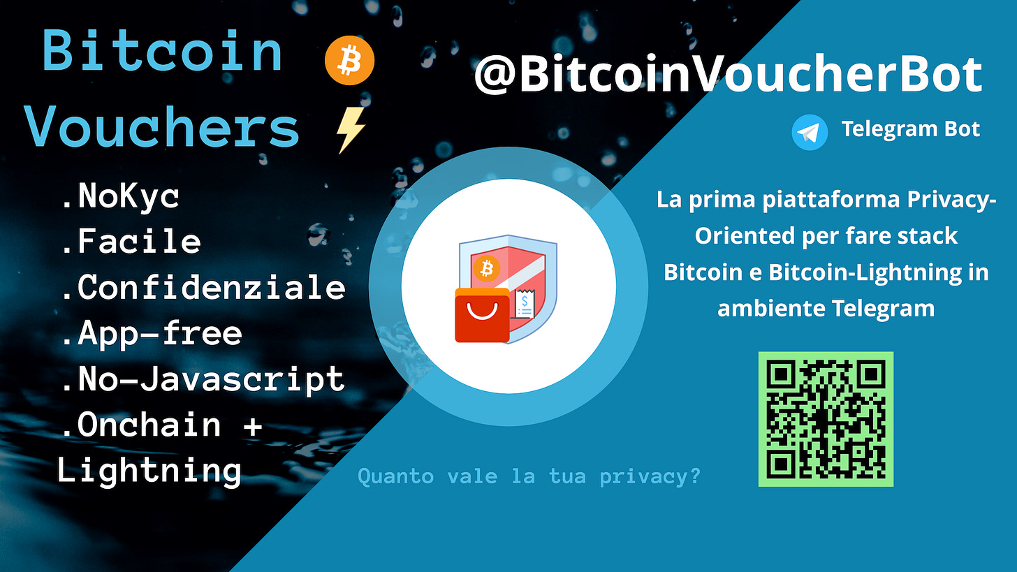 Senza dover completare alcuna pratica di KYC, Bitcoin Voucher Bot permette di comprare e vendere bitcoin sia on-chain che tramite Lightning Network con bonifico SEPA, con un limite di € 900 al giorno. E’ anche possibile effettuare swap - convertire quindi la liquidità in proprio possesso - tra on-chain e LN e tra on-chain e Liquid (e viceversa, in entrambi i casi). Non è tutto, perché grazie a Bitcoin Voucher Bot si può anche acquistare l’abbonamento a Mullvad VPN - pagando in bitcoin tramite Lightning Network - per incrementare la privacy della propria navigazione. Provalo!