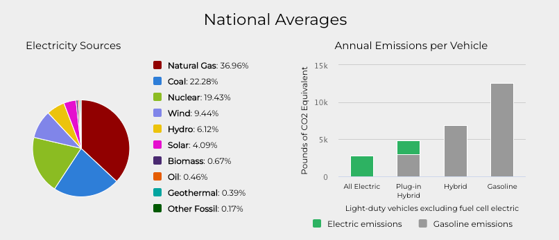 Nel caso delle auto tornano utili i dati del Dipartimento energetico degli Stati Uniti, secondo cui il 59,87% dell’elettricità utilizzata da veicoli elettrici e ibridi proviene da fonti fossili (gas, carbone, petrolio e altre).