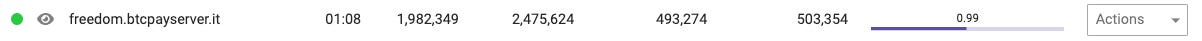 L’immagine seguente rappresenta un canale ben bilanciato del mio nodo Lightning. Il canale è aperto con il peer freedom.btcpayserver.it e ha 493.274 sats di liquidità in uscita e 503.354 sats di liquidità in entrata. Questo significa che il mio nodo, tramite questo canale, potrà inviare o inoltrare pagamenti fino a 493.274 sats e ricevere o inoltrare pagamenti fino a 503.354 sats.