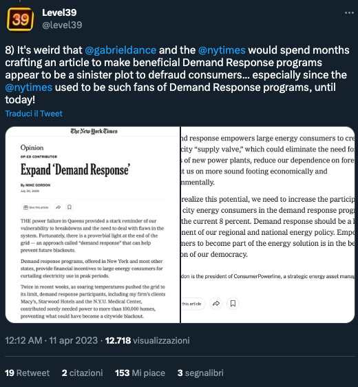 E persino il New York Times stesso nel lontano 2006 - quando Bitcoin ancora non esisteva - aveva sostenuto apertamente il programma Demand Response, come fatto notare su Twitter da Level39.