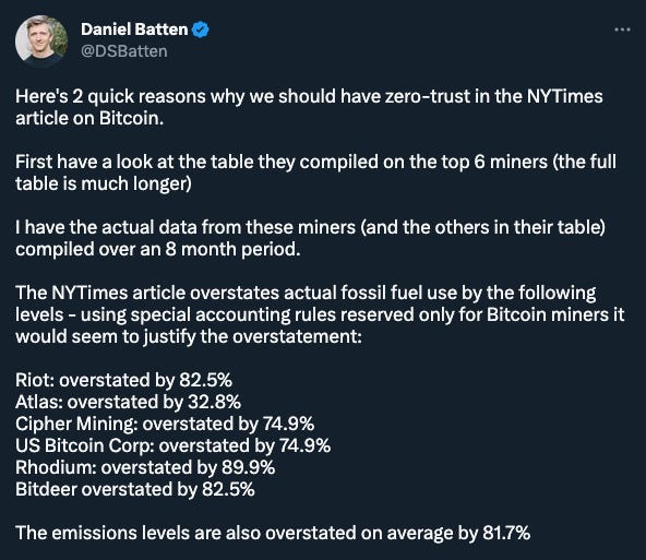 Affermare che il mining di Bitcoin sia dannoso per l’ambiente analizzando e fornendo i dati delle sole emissioni marginali non può che far trasparire una cosa: malafede.